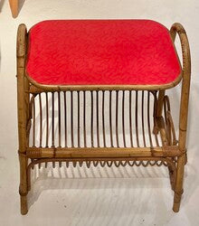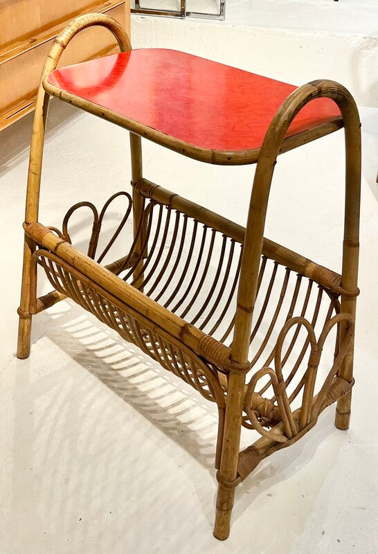Robuste porte-revues en bambou surmonté d'un plateau en Formica rouge